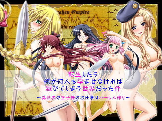 - 作品名は、『転生したら俺が何人も孕ませなければ滅びてしまう世界だった件〜異世界の王子のお仕事はハーレム作り〜』です。
