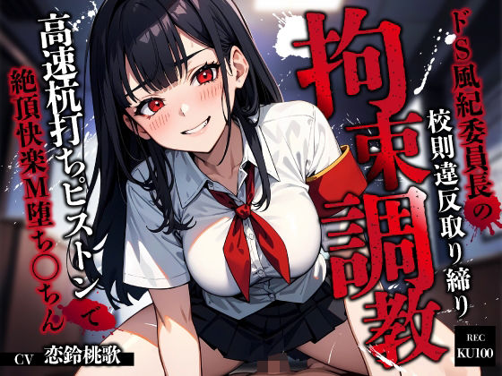 - 作品名は、『ドS風紀委員長の校則違反取り締り拘束調教〜高速杭打ちピストンで絶頂快楽M堕ち◯ちん〜』です。