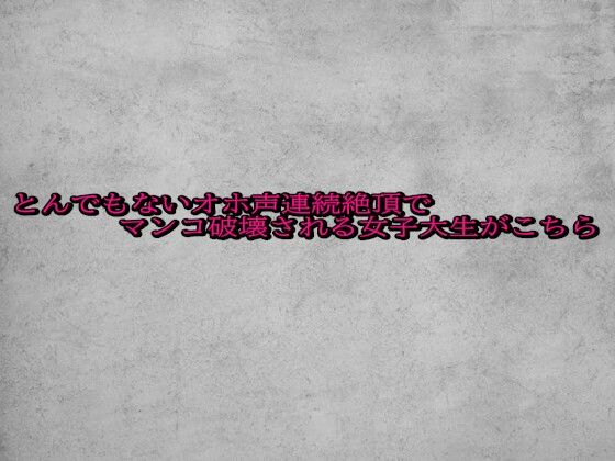 - 作品名は、『とんでもないオホ声連続絶頂でマンコ破壊される女子大生がこちら』です。