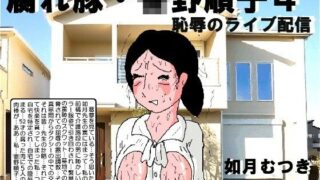 地元での露出凌●の後、5人の男達に自宅に連れ込まれた〇野順子(52才)。そこでは更なる辱めが彼女を待っていた。露出狂の変態熟女として、会員制ライブ配信のネタにネット上に晒されることに。自宅の中をネットに晒され、身バレの恐怖に震えながらも痴態を晒される羞恥に悶えなく順子。52才の腐りかけのたるんだ乳、醜く肉のついた下腹部、張りを失ったケツの肉…そして白髪交じりの陰毛に隠された腐った女陰と大便の出口。家族団らんの場所。居間で、キッチンで、玄関先で、逃げられない状況で醜い中年女の身体を晒される順子。それらをネットに晒されて、嬲られ、狂い泣きながらも露出調教の快感に興奮し脳逝きする中年ババア。読者待望の腐れ豚の第4話…満をきして販売開始。総天然色105ページ、乞うご購入。※順子の52才の閉経直前の腐った身体を表現するために、顔のシワ、贅肉にまみれた身体陰毛に生えた白髪等を模写してあります。その手の苦手な方は購入をお控えください。 |d_391906|腐れ豚 〇野順子4|